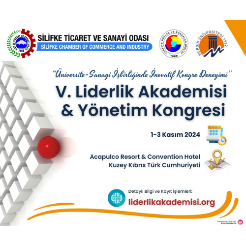V. Liderlik Akademisi ve Yönetim Kongresi, Silifke Ticaret ve Sanayi Odası tarafından 1-3 Kasım 2024 tarihlerinde Mersin Üniversitesi işbirliğiyle Kuzey Kıbrıs Türk Cumhuriyeti’nde gerçekleştirilecektir.