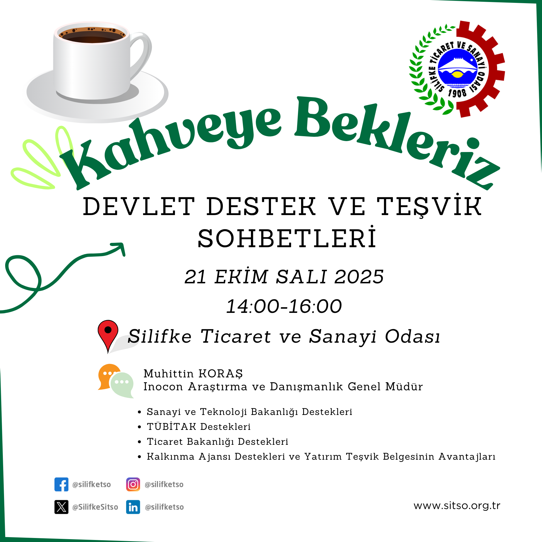 📌Kalkınma Ajansı Destekleri ve Yatırım Teşvik Belgesinin Avantajları konularında daha fazla bilgi almak için Odamıza Kahveye Bekleriz.