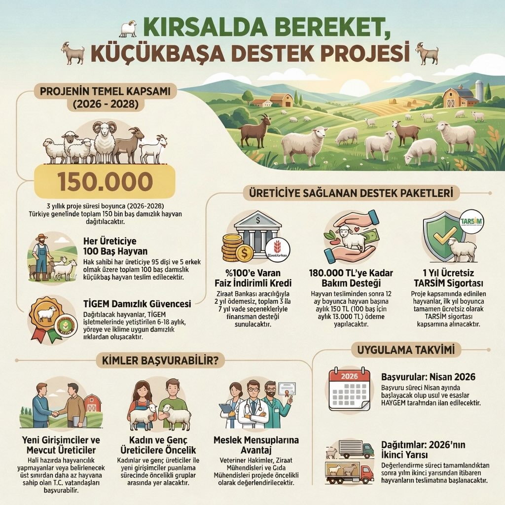 Başvurular Nisan 2026 tarihinde başlayacaktır. Değerlendirmeler sonucunda yılın ikinci yarısından itibaren hayvan dağıtımlarına başlanması planlanmaktadır.